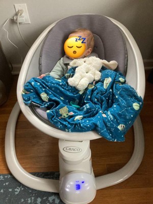 [This review was collected as part of a promotion.] Wow! I can’t even begin to say how much I love this swing. From its superior quality to its well designed features, there is nothing Graco didn’t think of. It’s pretty much ready to go right out of the box in 3 easy steps- yay! Its compact size is great for smaller spaces and makes it easily portable for travel too. It follows us from room to room in our home- giving hands free time. Also love that this swing has so many settings. From different heights to different speeds- and multiple soothing sound options. I especially love the white noise feature. The touchscreen is user friendly and easy to master and adjust. I absolutely love that the swing connects to my phone when I want to stream my own music- genius! The swing itself is plush. It has great cushioning and also an easy to adjust 5 point harness. The seat pad washes well between uses too. This would make an amazing baby gift and should be at the top of every registry- love, love, love! Thanks to the Stellar Product Testing Panel for providing me with this swing.