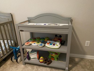 [This review was collected as part of a promotion.] I never thought of needing a changing table but in getting a free one, I like this one! It came with a changing pad and hardware to attach to the changing table itself. I thought that was great so it’d encourage caregivers to make it more safe for baby when they use the changing table. The two shelves below the changing table itself is quite spacious. I ended up putting a bunch of toys on there because that’s what the baby wanted to put there. And shoes. I can add diapers and wipes too if I wanted. There’s enough room for it all! The color grey is nice. It’s lighter than what I was expecting so it doesn’t match the rest of the room but overall, assembly was super easy and the table is sturdy.