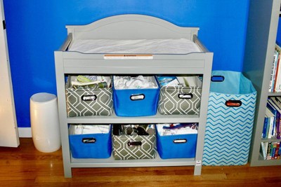 [This review was collected as part of a promotion.] This is the ideal changing table - Great size shelves to store cute baskets, diaper packs & wipes, diapers etc. Comes with a flat changing pad - would recommend upgrading to one with the curved sides so baby can't easily roll. Assembly was a little tricky because the parts weren't labeled with "front" etc., so unfortunately we ended up with one piece facing the wrong way. Not the end of the world, appreciate that the parts are finished on all sides.