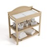 The Graco Story Changing Table is perfect for any nursery. This universal changing table includes a water-resistant baby changing pad with safety strap, and is equipped with 2 open shelves to store all of your essential nursery items. Available in multiple finishes, the Graco Story Changing Table is constructed with high-quality pine wood and composites.