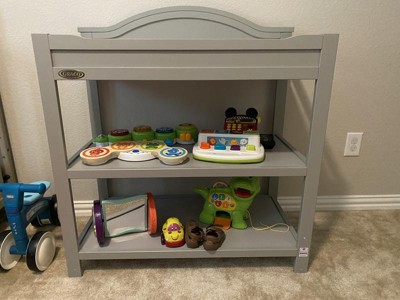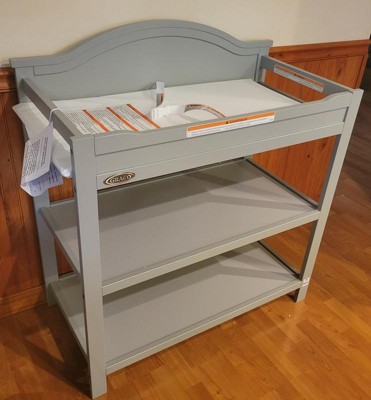 [This review was collected as part of a promotion.] I love this Graco Story changing table. The Pebble Grey color goes perfect with her nursery colors, sturdy, and has plenty of storage space for everything we need. The changing pad is nice and thick, so comfortable for baby while getting a change. Assembly was easy and all supplies needed to assemble came with it! Perfect gift for someone doing a neutral color nursery.