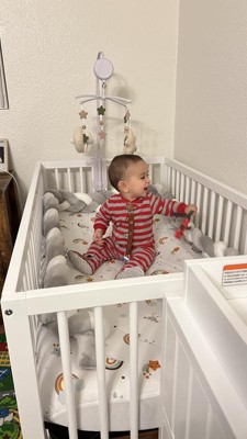 - ADAPTS TO YOUR GROWING BABY: Equipped with an adjustable mattress support base with 4 different height options; Designed to fit any standard full-size crib & toddler mattress (mattress sold separately)
