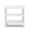 Combining modern style with convenient nursery storage, the Graco Teddi Changing Table features 2 open storage shelves to store your nursery and changing essentials and includes a bonus water-resistant baby changing pad with safety strap. The Teddi is crafted from quality pine wood, poplar dowels, wood composites, and its applied finish has been tested to meet or exceed the applicable ASTM and CPSIA safety standards. Also, like all Graco changing tables, the Teddi is JPMA Certified — meaning it’s been expert tested to meet or exceed all applicable category voluntary and mandatory safety standards.