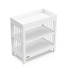 - CHANGING TABLE WITH STORAGE: Baby changing table with 2 open shelves for additional nursery storage and organizing of changing essentials; Modern, timeless, easy-to-match design