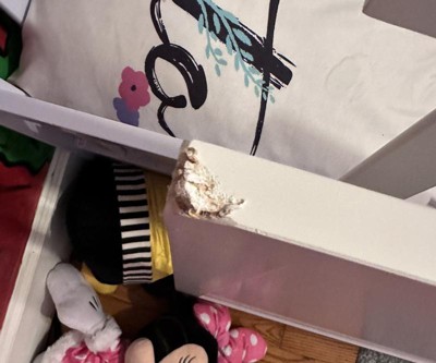Damaged. I am annoyed because it arrived damaged and target doesn’t have any service to fix issue (such as credit) for inconvenience. Moreover the crack and chip are the the top of crib and clearly visible. I would not order any furniture only from them again.