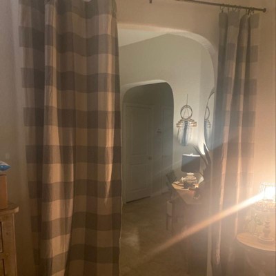 Grainger Buffalo Check Lined Room Darkening Single Window Curtain Panel - 52" x 95" - Linen - Elrene Home Fashions