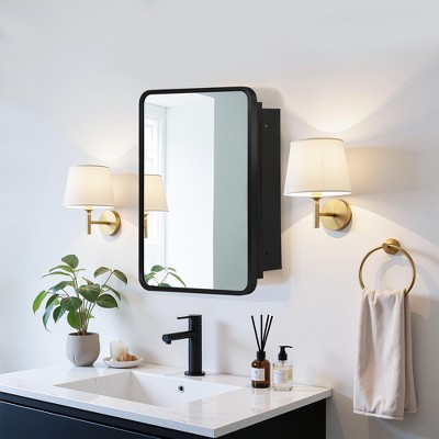 Grand 21"x30" LED Medicine Cabinet with Mirror, Modern Recessed or Wall Mounted Bathroom Cabinet, 3 Mode Light, Dimmable, Defogger, Aluminum, Black
