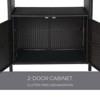 This outdoor buffet and console table is your go-to for stylish storage and serving space on your patio or deck. Crafted with a steel inner frame and wrapped in dark brown wicker, it offers a rectangular top that’s just right for displaying decor or setting out drinks and snacks. The weather-, water-, UV-, and rust-resistant design means it’s ready to withstand the elements. Plus, it includes built-in storage, making it a handy addition to your outdoor entertaining area. Just wipe it clean with a dry cloth to keep it looking fresh.