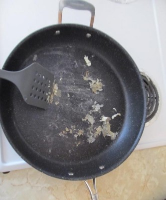 [This review was collected as part of a promotion.] I am so glad that I ordered this Frying Pan. It is the best pan that I have ever had in my whole life. While cooking in it everything is cooked to it's fullest capacity. Nothing tasted burnt at all. When cooking eggs in it I didn't have to use oil nor butter or anything of that nature, and still ended up with quality and fluffy eggs without using any oils can you believe that. I know I was in shock by that. It seems like it can help you eat healthy because it doesn't require you to use oils or butters. If you do you use a small amount of Olive Oil or Canola Oil you cook it at a Low temperature so that no Carcinogens will emerge and become a health risk.The pan does have some weight to it and it's a large pan to cook in.Im' so happy to have it and can't wait to make more fantastic dishes with this pan. The Clean up was a breeze. All I did was add some soap to a dish sponge and cleaned it with the (soft) side and some water and the food particles that were left wiped and washed out so easily it gave me less of a headache to wash it out. That makes life so easy. I Love this pan and I want to get rid of all of my other pans and only keep this one. I like how the Granite feels on the pan.