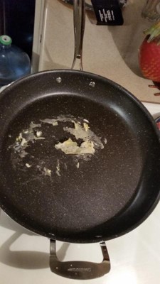[This review was collected as part of a promotion.] I, personally, will have to disagree with all the "as seen on tv" infomercials. It is not a nonstick frying pan. I do love the large cooking surface and the sturdiness of the pan and was successful in making a quick hamburger helper meal. I haven't used it in the oven yet, but can't wait till I do since it can be used in the oven.