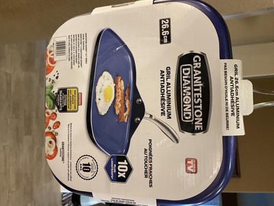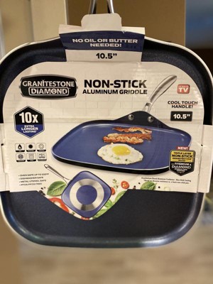 [This review was collected as part of a promotion.] I used my new Granite Stone Diamond Blue 10.5 Griddle Pan for a big Sunday breakfast and I have to say I am I am impressed! This griddle is truly non stick. Everything from the eggs to the pancakes came out perfect . No oil or cooking spray needed. I cant wait to try grilled cheese and reubens next. The pan itself is well made and can also be used in the oven at temps up to 500 degrees.