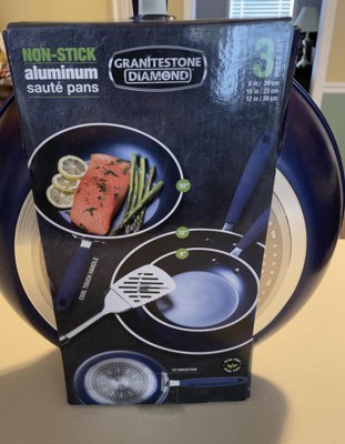 Granitestone Blue 3 Pc Nonstick Fry Pan Set 8'' 10'' and 12'' Fry Pans