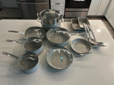 [This review was collected as part of a promotion.] This set is absolutely beautiful! I love that it’s healthy cooking and there is no need to use any oil or butter. Comes with everything you need and is up to 500* oven safe. The handles are cool touch, very easy to clean and dishwasher safe too. I love the color also as it goes well with my decor. There is a 10 year warranty as well which I hardly ever see for cookware, gotta look into that!