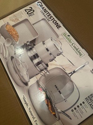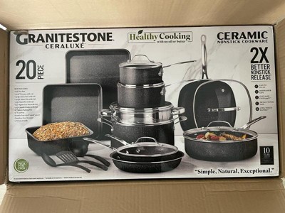 [This review was collected as part of a promotion.] Granite stone ceraluxe 20 piece grey non stick ceramic. It cooked so good. It didnt stick, they worked amazing and washed up so good. I would recommend them to others.