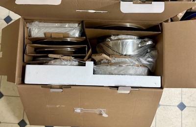 Includes: 8.5" Skillet, 10.5" Frying Pan, 1.5 Quart Saucepan With Lid, 2.5 Quart Saucepan With Lid, 5 Quart Stockpot With Lid, cookie sheet, Steamer, Spoon, Slotted Turner, Ladle