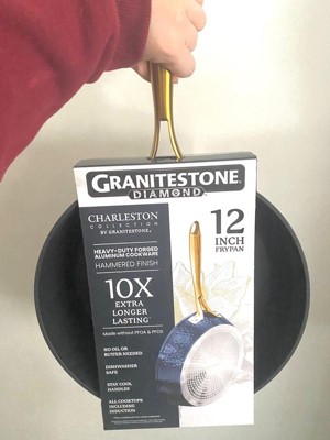 - GRANITESTONE CHARLESTON COLLECTION: A nonstick pan that will become your go-to for meal prep and busy weeknights. Made to last 10x longer and handle the ins and outs of everyday use, this durable pan is dishwasher safe and oven safe up to 500ûF. The hammered, modern farmhouse design adds a stylish component to this durable cookware piece.