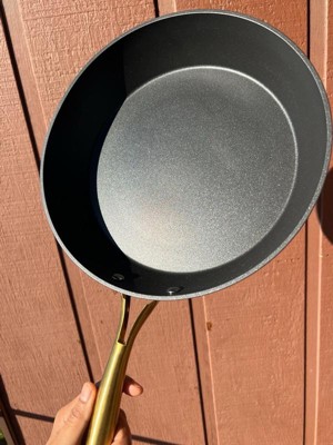 [This review was collected as part of a promotion.] This nonstick pan is genuinely so great! It has a beautiful shade of blue, it really is completely nonstick, and cooks really well! So far I have made both eggs and a stir fry in here, and they turned out amazing!