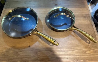 [This review was collected as part of a promotion.] These are not only stunning but also high quality! They are durable and I love the gold handles! Definitely the best pots and pans I’ve ever owned. I love the fact that you do not need to even add oil to your pan… I made scrambled eggs in the frying pan last night and they were completely perfection AND an easy clean up since the eggs did not stick to the pan. Would definitely recommend!!
