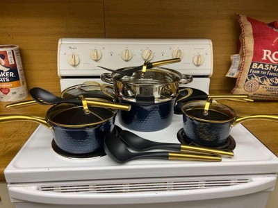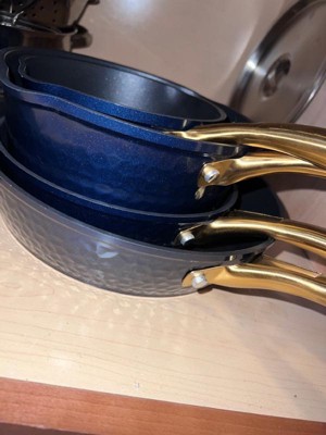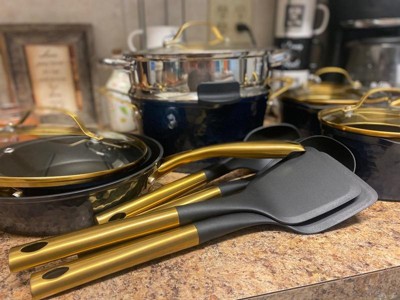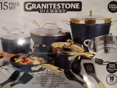 Granitestone Charleston Collection Hammered Navy 15-Pc Nonstick Cookware Set with Utensils