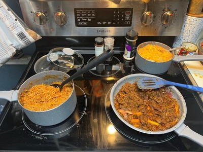 [This review was collected as part of a promotion.] This set comes with so many kitchen essentials and has such great value. The pans truly are nonstick and heat up nicely. I don’t even have to spray oil when cooking with them. I highly recommend these!
