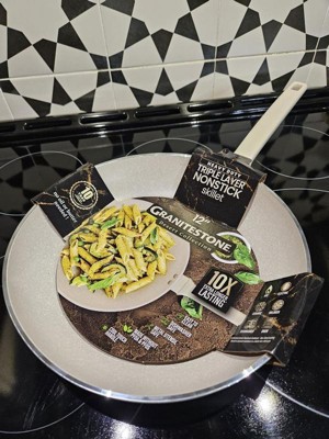[This review was collected as part of a promotion.] I have been testing this pan out for about almost 3 weeks. It has been incredible! I’ve made pasta, eggs, and a sweet dish and literally NOTHING stuck to the pan. It was so easy to cook on it. This 12” is a great size, glad I picked this one. I love how durable it is but also light weight! And let’s not even talk about the cleaning! It is seriously so easy, I barely have to scrub and it all comes off! Thank you so much Influenster for this opportunity!