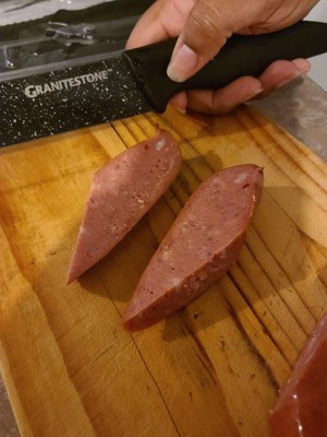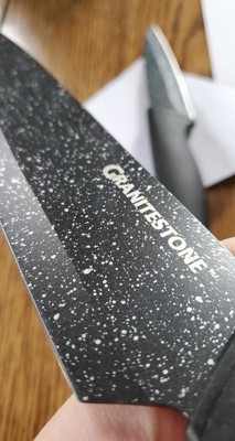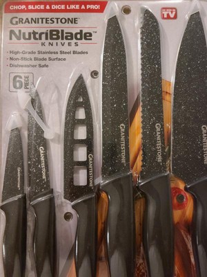 [This review was collected as part of a promotion.] The Granite Stone Nutri Blade Knives are very sharp and have a neat look to them. The only think a tad disappointing is the handle, just need to pay close attention when cleaning and make sure it's clean where the blade meets the plastic. Super sharp blade, be careful! I've enjoyed using these in my kitchen; from cutting cheeses, bread and dicing up a chicken breast.
