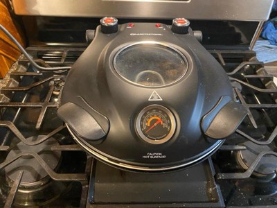 [This review was collected as part of a promotion.] Unfortunately I wasn’t able to finish making a pizza as this product got too smoky in our kitchen. Our setup doesn’t allow me to put it somewhere that I can get good ventilation or put under our hood so it set off our smoke alarms. Definitely not something I want to go through while trying to make a pizza.