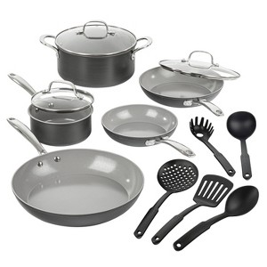 [This review was collected as part of a promotion.] I received my Granite Stone - Pro Hard Anodized 13 pc. Cookware Set and the first thing I noticed, right out of the box is what an attractive set of cookware this is and that it goes with any decor. There are so many great features to this cookware including the fact that that it is durable and dishwasher safe making cleanup so easy. The handles are cool-touch handles and the glass lids fit tightly. The set is oven safe which is a great feature and the nonstick finish makes cooking so easy. This cookware set includes all the saucepans, cooking pot, saute and frying pans, including lids, you need to cook family meals. They are very well made and I love cooking complete meals for my family and friends and I see them lasting quite a while, so I highly recommend this set of cookware.