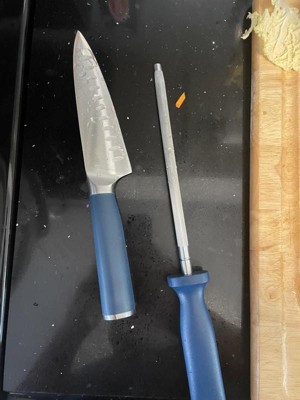 [This review was collected as part of a promotion.] What a gorgeous knife set ! I’m very pleased with the granitestone knife set in blue it looks beautiful on my counter definitely not a set to hide. The knives arrived and were very sharp . There was a knife for every type of culinary need even shears for cutting meat. I especially like that the set it dishwasher safe which is my washing preference. I’m excited to make meals using this set I feel very professional