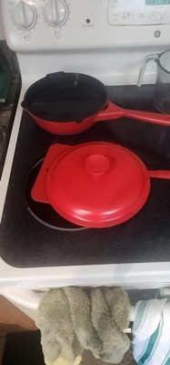 [This review was collected as part of a promotion.] Beautiful red pan set with great accessories. I generally am not a non stick pan person, and do have some concerns about how “clean” they really are in terms of toxins. That being said, they are beautiful and easy to use and clean.