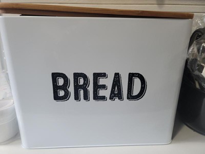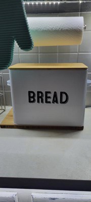 Granrosi 10" Tall Vintage-Inspired Farmhouse Metal Bread Keeper Box Storage Container with Bamboo Wooden Lid and 2 Handles, White