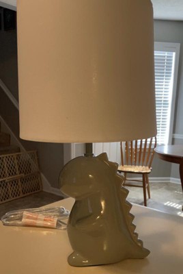 [This review was collected as part of a promotion.] Globe Electric - Tommy Dinosaur(16" Ceramic Table Lamp) table lamp is so cute. It has a white Cotton Shade, perfect size for a small lamp, and it looks grey that was mixed with a light green(grey is one of my favorite colors). I was going to give it to my god son but I think I might have to keep him for myself lol. Jk.. Maybe.