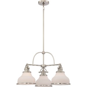 This opal etched glass fixture is an elegant nod to the past. The classic Americana styling adds a nostalgic flair to your home. When hung over a kitchen island or dinette table it provides ample lighting for all your daily tasks. It is available in Brushed Nickel , Imperial Silver and Palladian Bronze finishes.