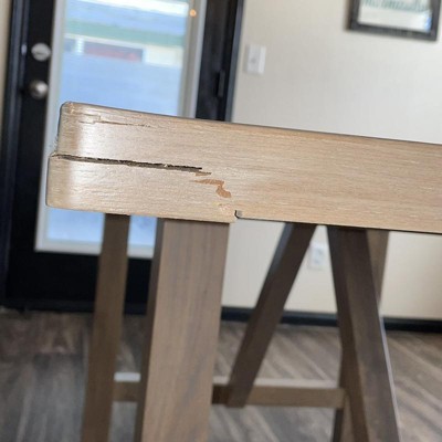 I have no issue with ours! Have had it for months and it is sturdy, cute & great price. Was fairly easy to assemble and we plan to use it for a breakfast nook situation
