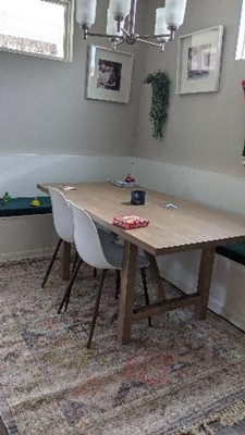 I visited every furniture store in my town and all of the tables were overpriced, cheaply made and all had the same look. It was so disappointing. I finally found this table and although I was a bit skeptical due to reviews, I figured I would give it a shot especially since target online orders can be returned to store which is not easily done with other furniture stores. It's a great color and design, easy to assemble. Suits my modern-ish taste and once I update the bench seating upholstery, this dining area will look so much better!