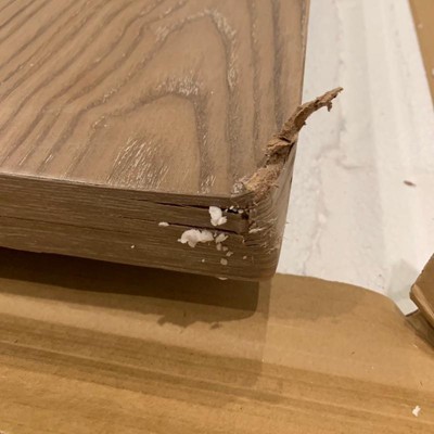 Love this table except for the color. It’s a much darker brown than what’s pictured and has a slight purple tint to it. Arrived in perfect condition and it’s solid, but I’ll be returning.
