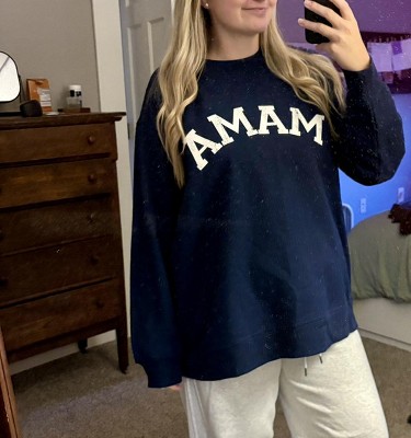 True to size, if you’re between sizes you could probably size down. I love that the sweatshirt has plenty of room for belly to grow, it covers my butt for when I wear leggings, and the arm length is great! A lot of oversized sweatshirts usually have such long sleeves that I always have to roll them up but not this one. The only way this sweatshirt could be improved is it would look a lot more elevated with an embroidered text instead of just screen printed. But other than that it’s great! It would be fun to see it in more colors! I also got it on sale for like $21 so that makes it even more valuable for what I paid. I’m 5’6” and 24 weeks pregnant here if that’s helpful for anyone.