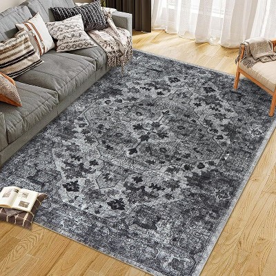 Gray 10x13 Ft Boho Runner Rug – Soft, Non-Slip, Washable Vintage Print for Living Room & Bedroom