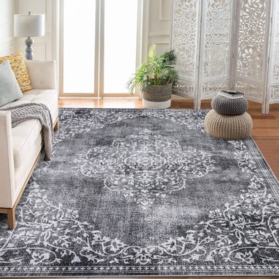 Gray 6x9ft Braided Print Area Rug - 100% Polyester, 350gsm Pile, TPR Non-Slip, Washable, Farmhouse Design