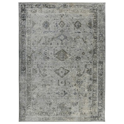 A: The rug features a traditional design with a medallion pattern, adding elegance to any space.
