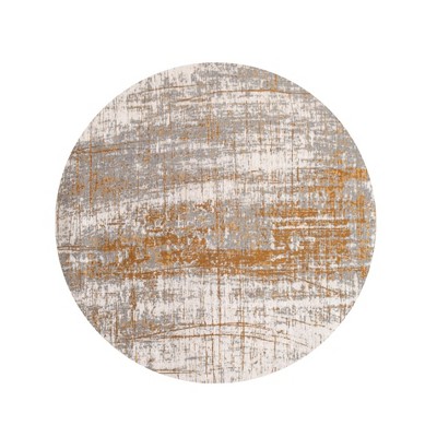 This 5-foot gray and white round abstract non skid area rug, is a great way to add warmth to a room. This geometric round shaped rug features a abstract pattern in gray and white that combines a good looking print with a unique and updated shape. The mix of shape, color, and design gives this rug refreshing visual interest. This smaller sized rug is just what you need for your walkway, or in front of door, cabinet, refrigerator, or chair. 48-inch h x 48-inch w x 0.12-inch d