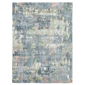 A: The rug features a modern abstract design that adds a contemporary touch to any space.