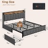 Rustic Linen Upholstered Platform Bed Frame, 2 Storage Drawers, Upholstered Headboard with Storage, Heavy Duty, No Box Spring Needed