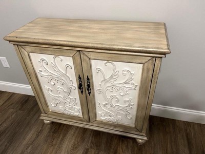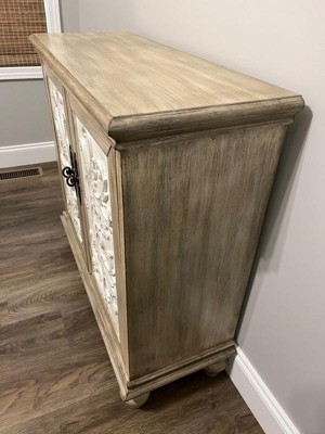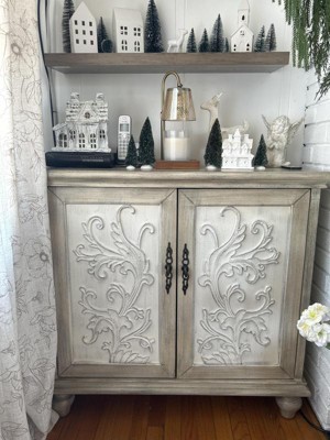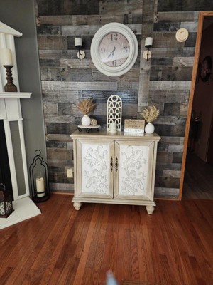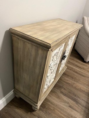 Grayson 2 Door Cabinet Reclaimed Natural: Floral Design, Adjustable Shelf, Cream & Brown Decorative Storage