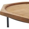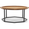 This rustic yet modern coffee table has a compact footprint and generous tabletop space that works wonderfully in a city apartment, smaller home or any room with limited space. With its solid wood in a natural finish and black matte octagonal base, this table offers a rustic look that’s of-the-moment. The geometric frame and tabletop offers a sturdy foundation, while the round table space adds subtle curves. This coffee table is perfect next to your sofa or sectional to hold your beverages, snacks, and remotes – the tabletop’s lip helps to keep all items secure. Pair with the matching side table for a charming, modern farmhouse living room set.