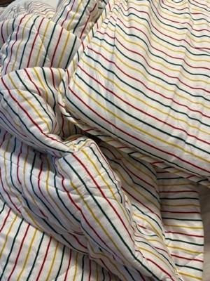 [This review was collected as part of a promotion.] This is a perfect light weight (fall) comforter set! The pattern is minimal & both sides look great. This quilt is a simple design that adds a fresh uncluttered feel to holiday decor. Quality is nice. A light quilt. Which works for queen bed.
