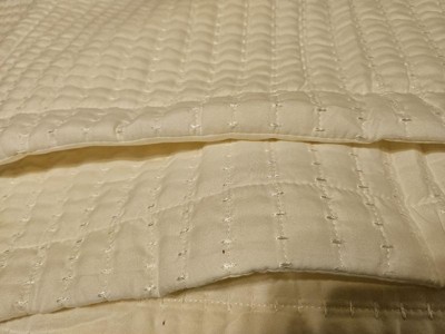 [This review was collected as part of a promotion.] I am blown away at the quality and look of this set! I chose the color cream, which is a true cream, not yellowish. The pillow shams match beautifully. I am in love with the sticking, as you can see in the photos. I will be putting this on my daughter's bed, as now it is getting warm here in florida, but it would be perfect in any weather.