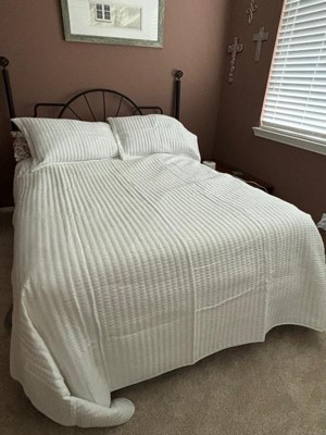 [This review was collected as part of a promotion.] If you’re looking for a crisp white weave basket quilt set than this is for you! It’s very lightweight and very comfortable and cozy. It is for my liking a little too white but it’s very nice. It comes with 2 standard queen size shams making it a whole bedding ensemble.