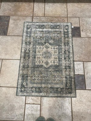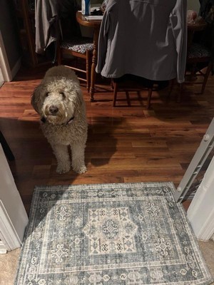[This review was collected as part of a promotion.] I had originally planned on putting this rug in a bathroom, but miscalculated the measurements. It’s now has a home in the kitchen. I love the blend of blues and grays, and I’m now thinking of how I can change the accent and colors in the room. Love that it is washable, and the durability so far is excellent.