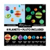 - Contents include: 8 Glowing Planets, 1 Glowing Dwarf Planet, 230 Glowing Adhesive Stars, Comets, and Asteroids, Planetary Guide, 25 Feet of String, 10 Star-shaped Tacks, Adhesive Putty